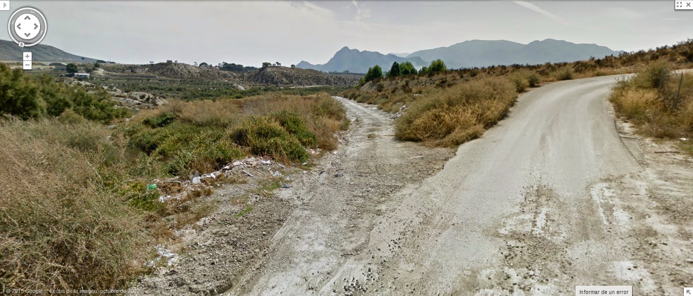 N-301, km 424,600 / A-30, km 171,500. Término de Murcia, jurisdicción de Lobosillo. Después de unos 14 km de autovía recta y anodina, alcanzamos el punto donde la primitiva nacional (hoy llamada N-301a) se separa definitivamente de la autovía A-30, que sigue otro trazado diferente hasta llegar a Cartagena. Por supuesto, vamos a desviarnos para encontrar y observar los últimos vestigios y demás elementos y lugares que aún tiene la nacional reservados para nosotros, en estos 16 kilómetros finales hasta Cartagena. :-)